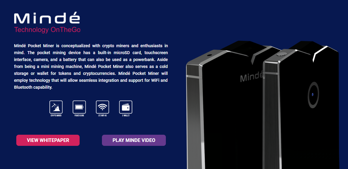 Minde Pocket Miner является уникальным портативным устройством. Среди основных преимуществ - встроенная карта microSD, сенсорный интерфейс, а также камера и аккумулятор. Minde Pocket Miner является надежным, качественным устройство, его можно использовать как кошеле и хранилище для своих токенов, это дает шанс защитить их от мошенников. Minde Pocket Miner использует технологии, которые позволят бесшовную интеграцию и поддержку Wi-Fi и Bluetooth.